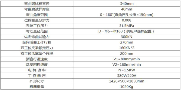 YDBS-500A立式鋼材彎曲試驗機 用途: 本機是按國家標準GB/T1499-2010, GB/T232-2010及YB/T5126-2003的規定而研制的。可彎曲HRB400以下φ50以內鋼筋。其結構性能完全符合試驗規范要求,采用支輥式及翻版式彎曲裝置,支輥或翻版可通過側向輔缸自行調節,彎芯更換方便等功能,工作可靠,操作方便。 主要特點: 該機配置雙工位,在對試樣進行了冷彎時,一遍成型后,側向輔缸施加壓合力,使試樣過盈彎曲,消除殘余應力,達到卸荷后彎曲角度更精確的等于180°。 主要技術參數: